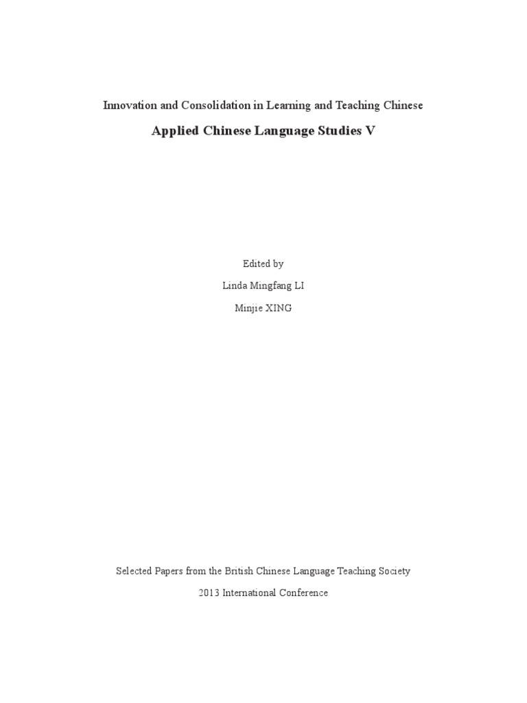 Applied Chinese Language Studies V 删减版 Pdf Second Language Second Language Acquisition